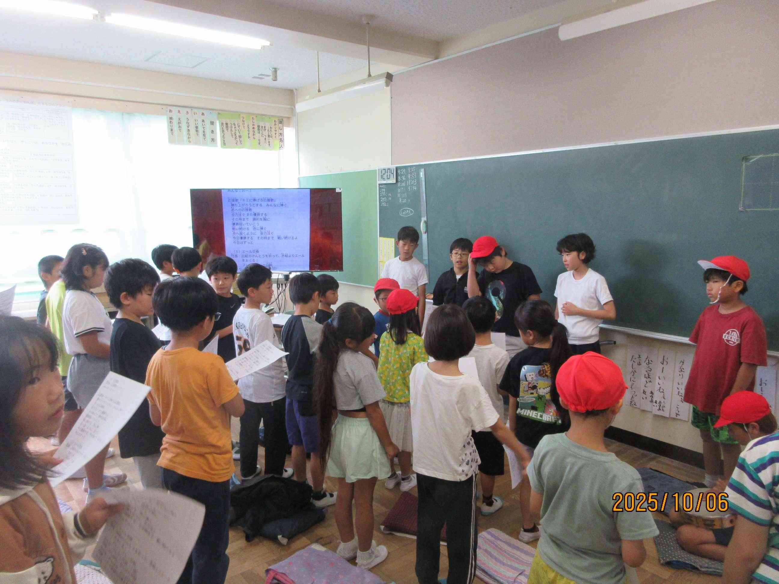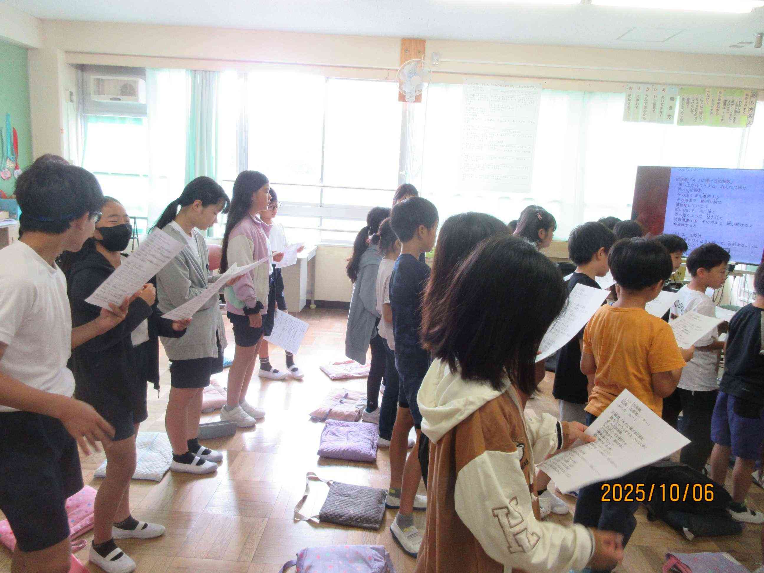 いよいよ、運動会まであと2週間をきりました。先週から、朝の時間を利用して運動会の練習を行っています。今日は、応援の練習でした。応援団を中心に各組の応援の練習をしていました。初めは、小さな声だったのですが徐々に大きな声が出るようになってきました。