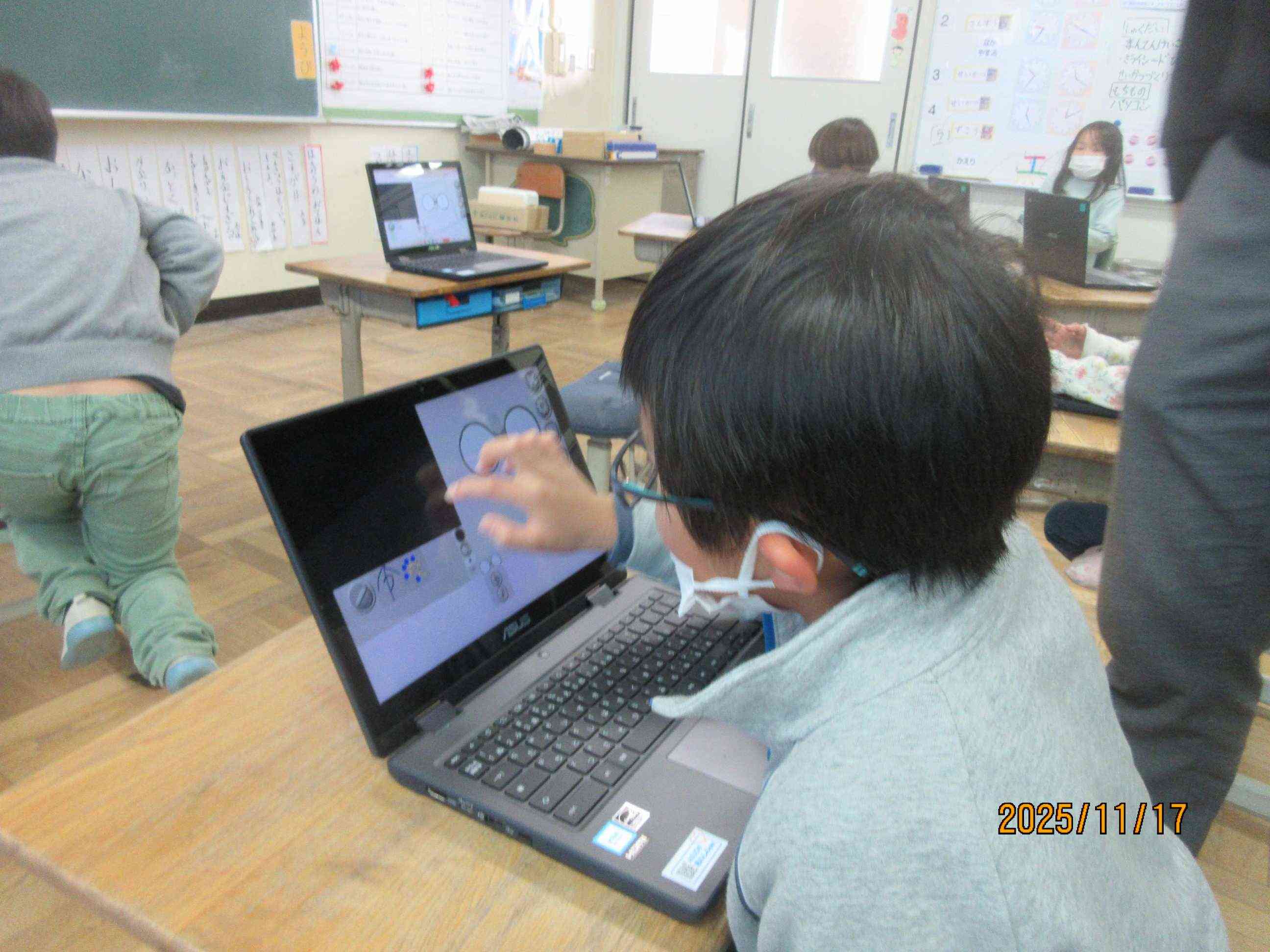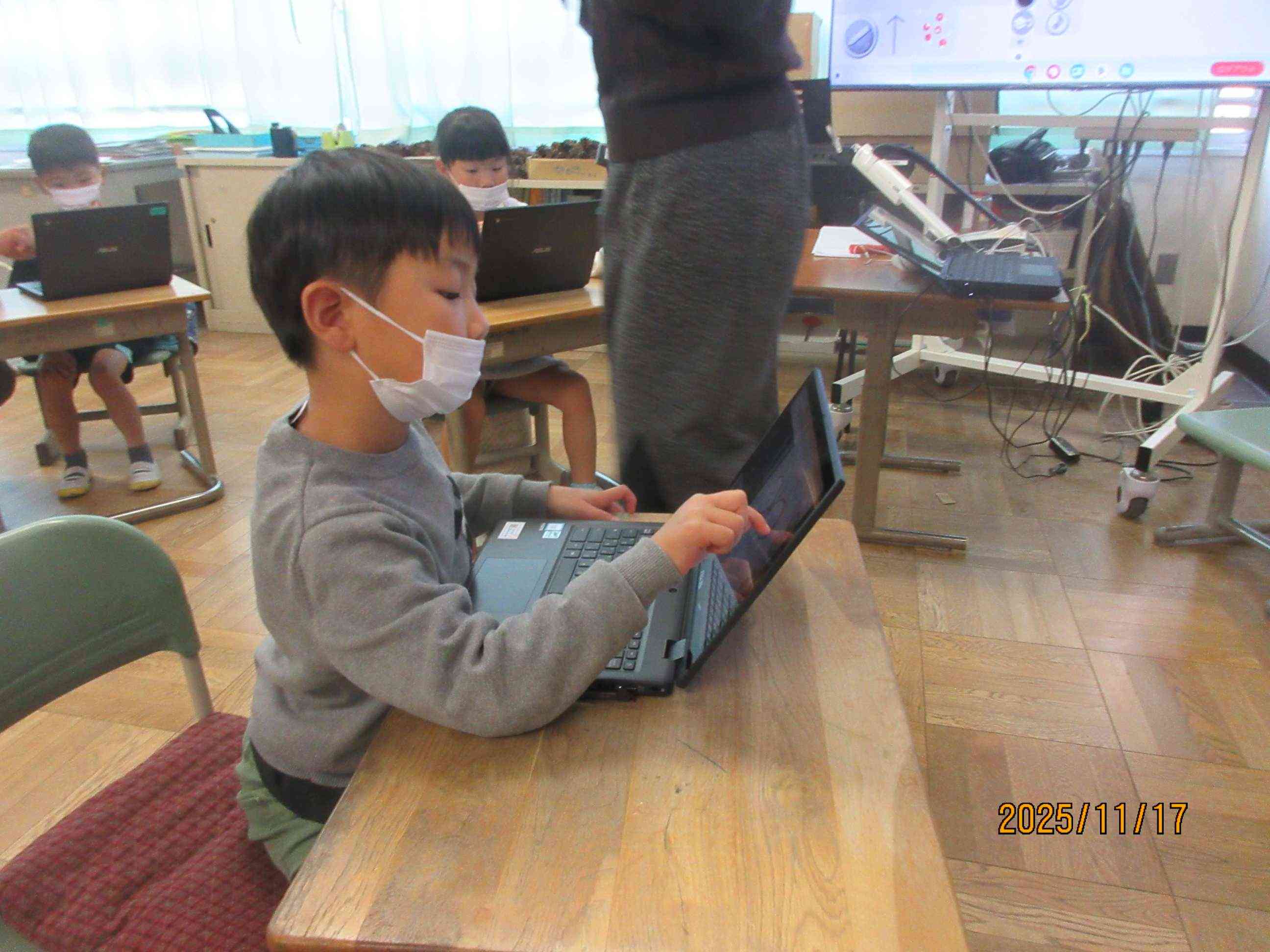 昨日の5時間目は1年生はPCの時間でした。PCの先生が授業に入りPCを使ってみます。今日は、タッチパネルを使って操作を学ぶです。みんな、上手くできたかなぁ〜