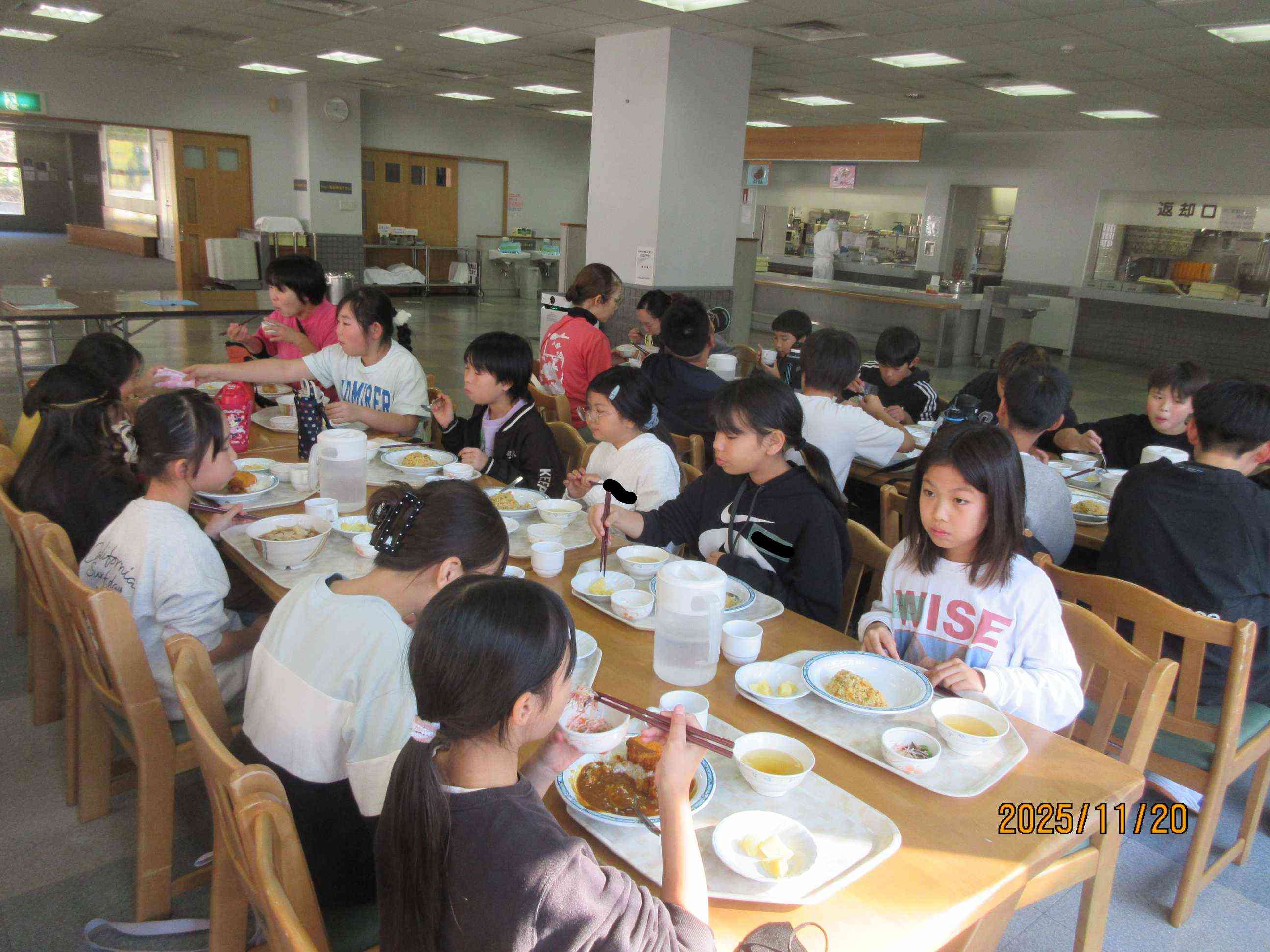待ちに待った昼食です。午前中はゲームやオリエンテーリングなどでとても歩き回っています。子ども達はお腹ぺこぺこです。