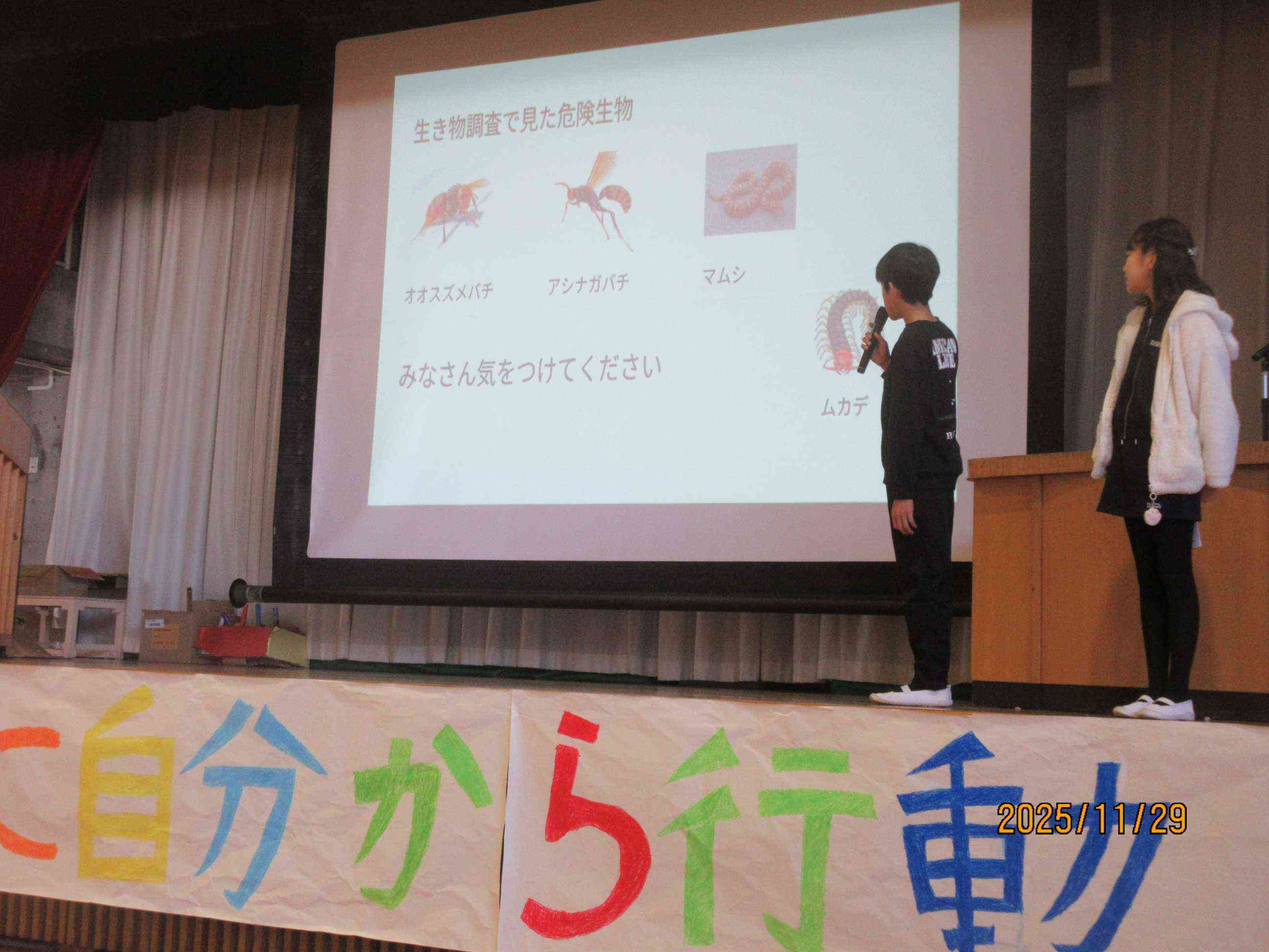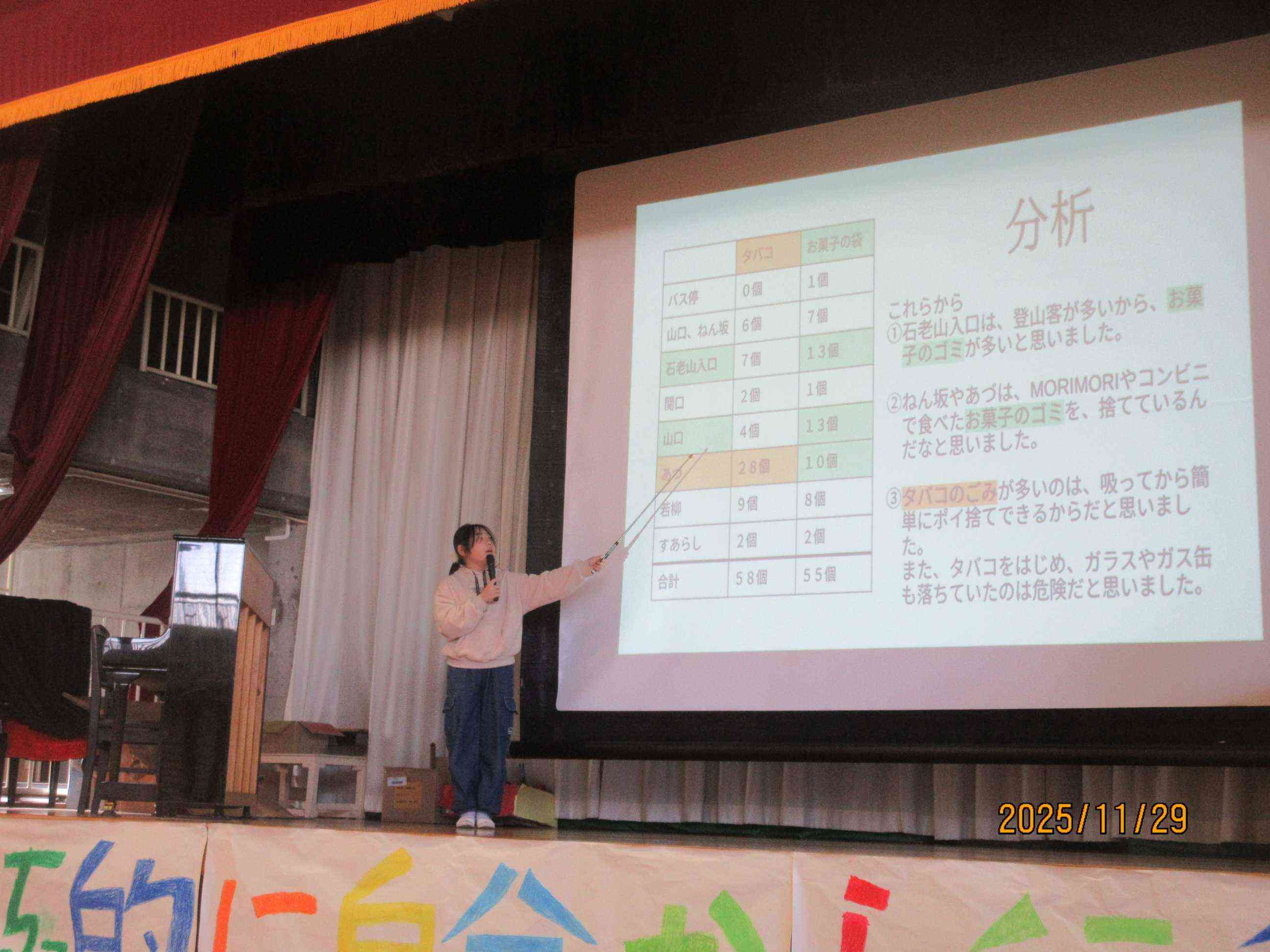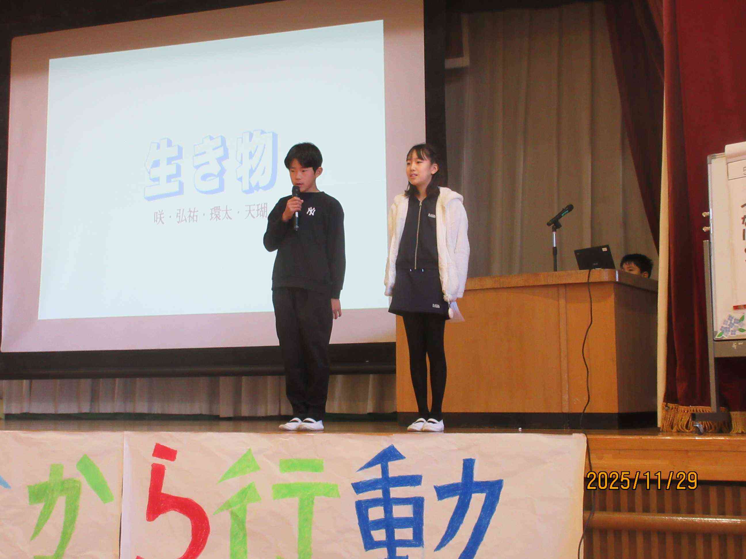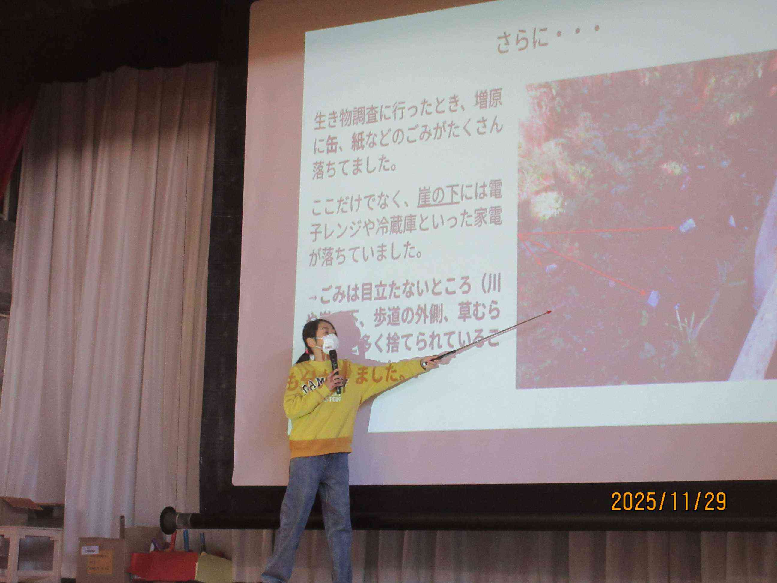 5年生は内郷地区の自然環境をテーマに、身近に生息している動物とゴミ問題を中心に活動報告がありました。